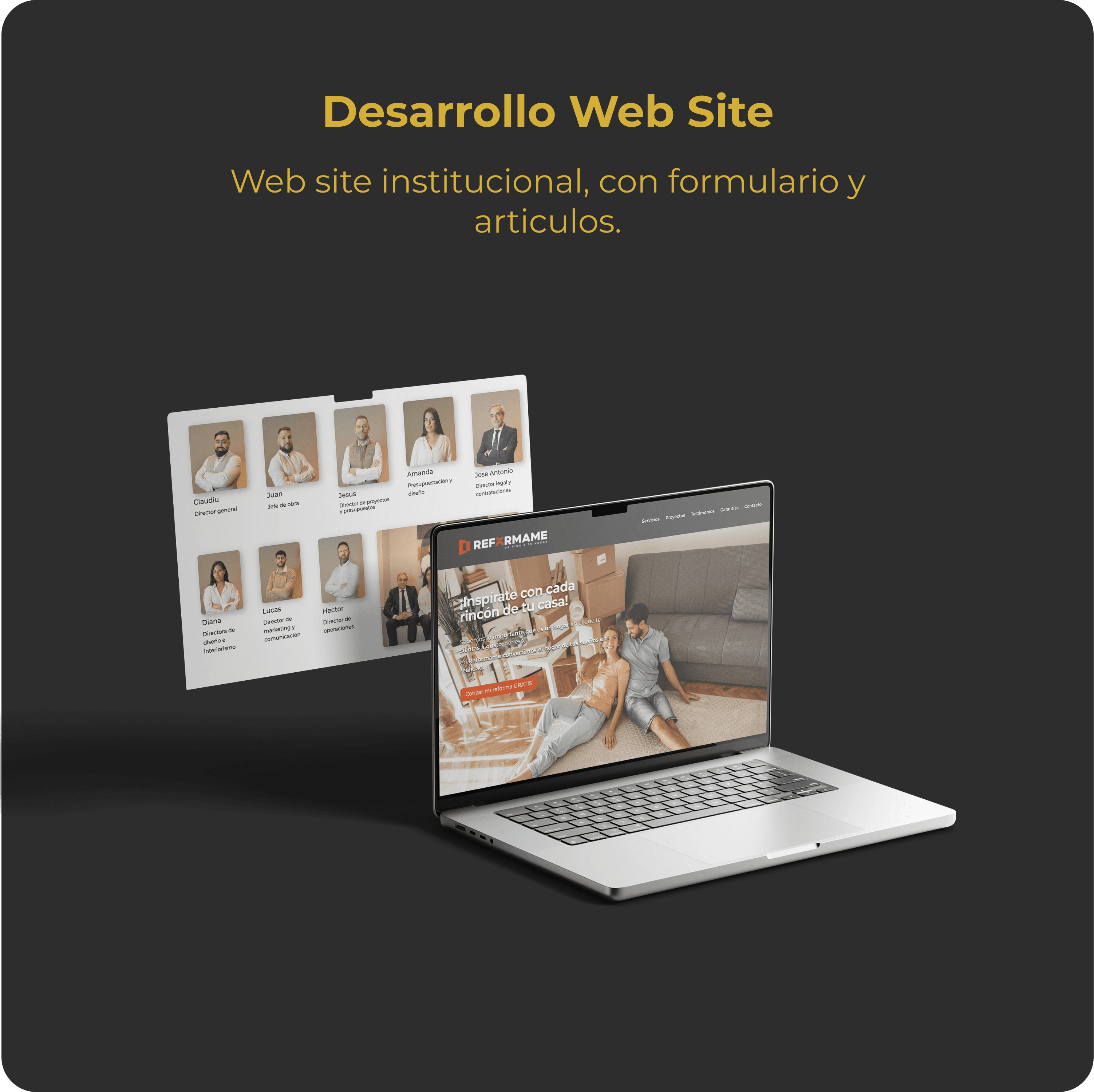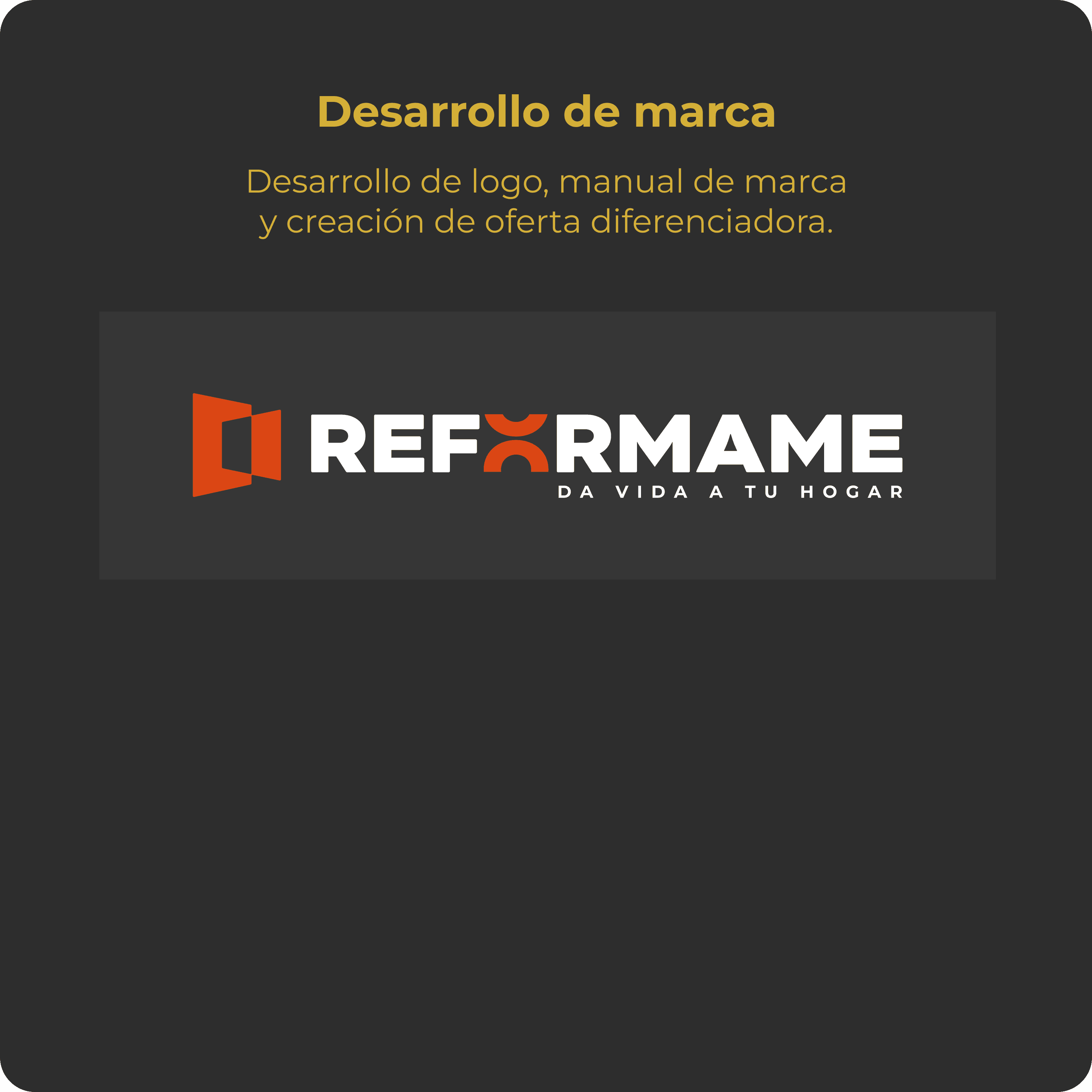 Born in Madrid, Reformame is a premium home renovation firm. His owner, Julian, has chosen me to develop and launch the branding strategy. We developed the logo, branding strategy, website and social media strategy.